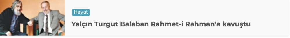 Tedavi gördüğü hastanede vefat eden Yalçın Turgut Balaban, ebediyete irtihal etti.