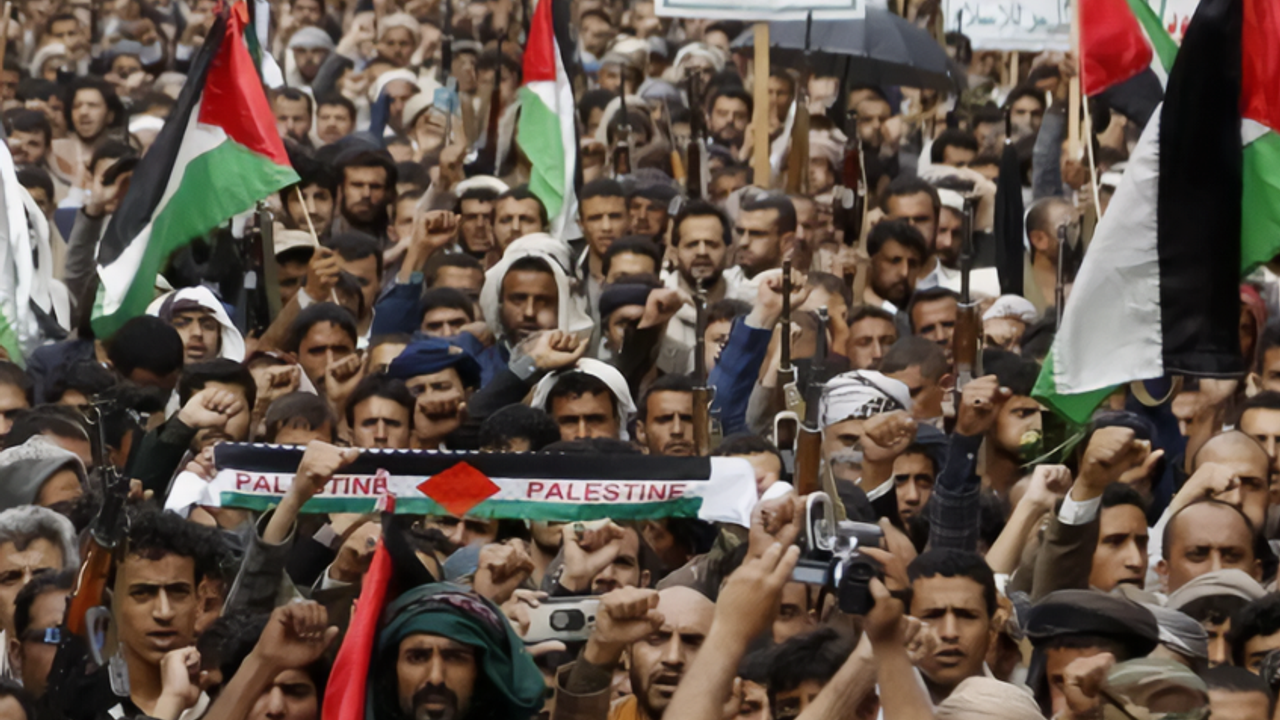 Trump'ın Gazze planına tepki gösteren göstericiler, Filistin ve Yemen bayraklarının yanı sıra ABD ve İsrail karşıtı pankartlar açarak, "Yemen'den bir uyarı; yerinden edilmeyi savunanları ezeriz", "Gazze biz hâlâ yanındayız. Yanınızdayız, onlar dönerse biz de döneriz" sloganları attı.