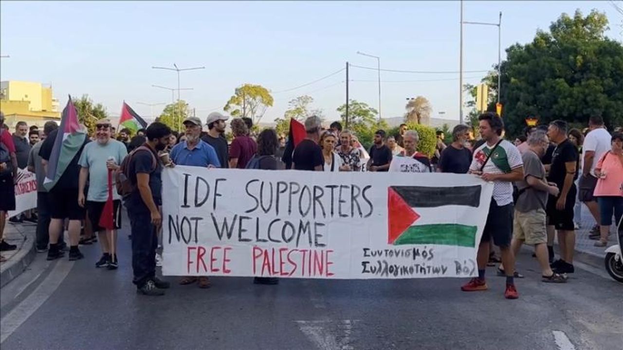 Yunanistan Komünist Partisi (KKE), çeşitli sol gruplar, sendikalar ile Filistin destekçisi aktivistlerden oluşan grup, İsrail'e ait gemideki yolcuların karaya çıkmasını engellemek amacıyla Pire Limanı'nda bir araya geldi.