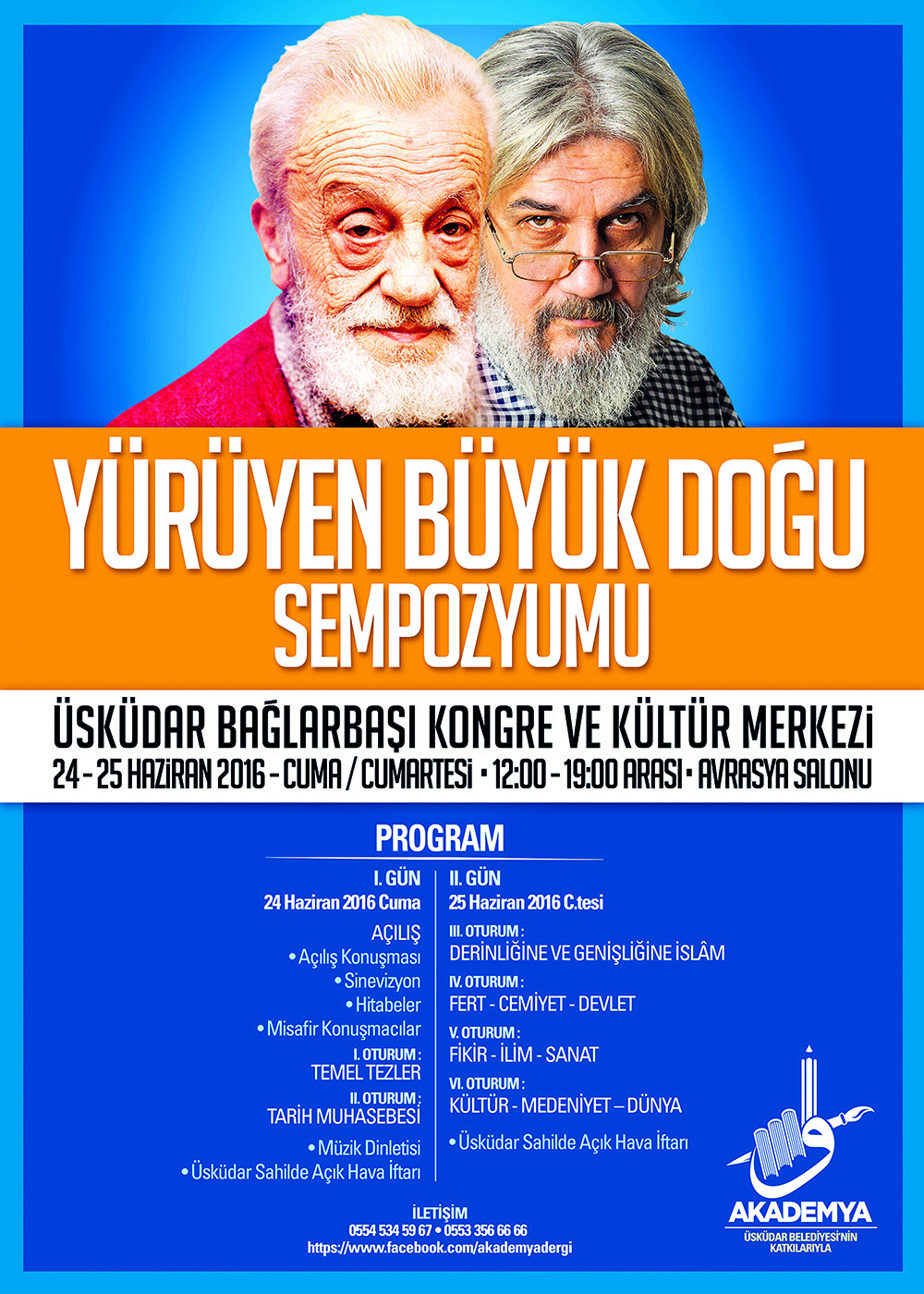 23-24 Haziran tarihleri arasında Üsküdar Belediyesi Bağlarbaşı Kongre ve Kültür Merkezi’nde Yürüyen Büyük Doğu Sempozyumu’nda buluşmak üzere.