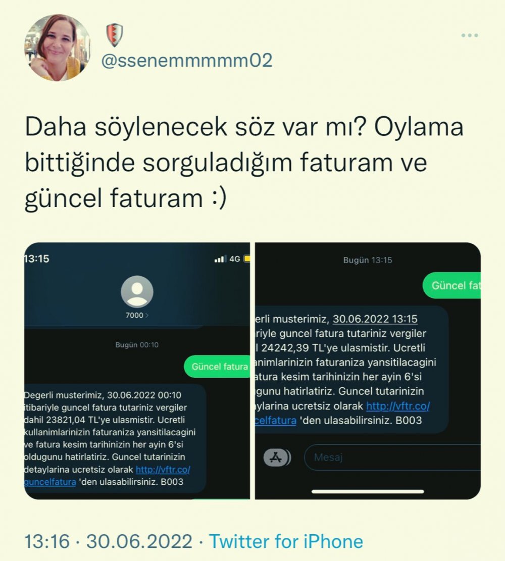 SMS oylaması yapan gençlerin, paylaştıkları telefon faturaları dudak uçuklattı. “Geçinemiyoruz, ülkeyi mahvettiniz” diye tivitler atan bir şahsın SMS yoluyla Survivor programına yedirdiği 24 bin lira görenleri şaşırttı. Fatura üzerinden yapılan hesaba göre her bir adeti 3,9 TL olan SMS’lerden yaklaşık 6 binden fazla atıldığı görülüyor.