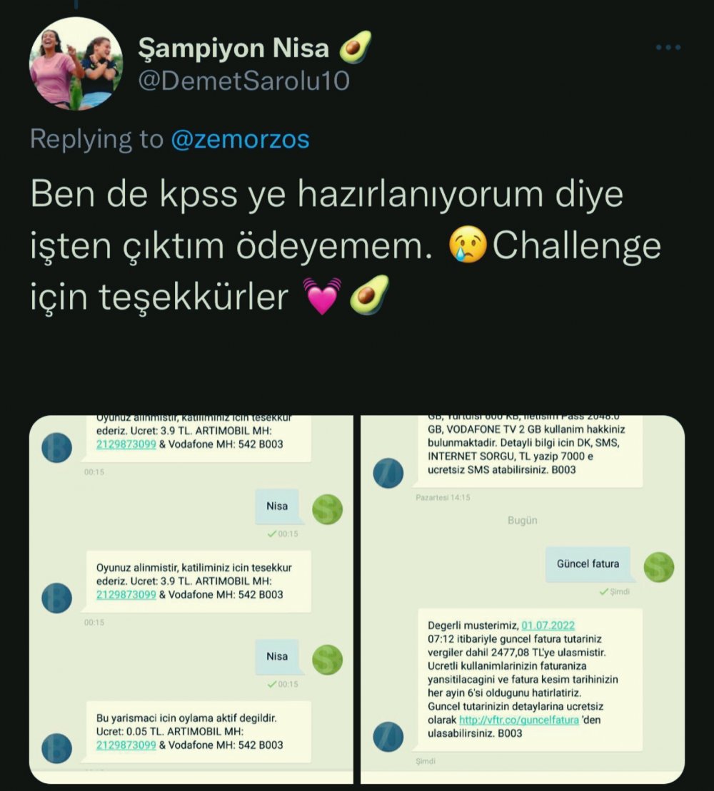 Öte yandan sosyal medyada bir Survivor fan hesabı, takipçilerine faturalarının hepsini kendisinin ödeyeceğini söyleyerek desteklediği adaya SMS göndermelerini konusunda ikna etti. Çok sayıda kişi fan hesabına güvenerek, faturaları 6 bin liraya çıkacak kadar SMS gönderdi. Ancak faturaları ödenmeyen ve karşılarında herhangi bir muhatap bulamayan çok sayıda kullanıcı dolandırıldıklarını anladı. Faturalarının ekran görüntülerini Twitter'da paylaşarak yardım isteyen ileri zekalılar eleştiri oklarının da hedefi oldu.