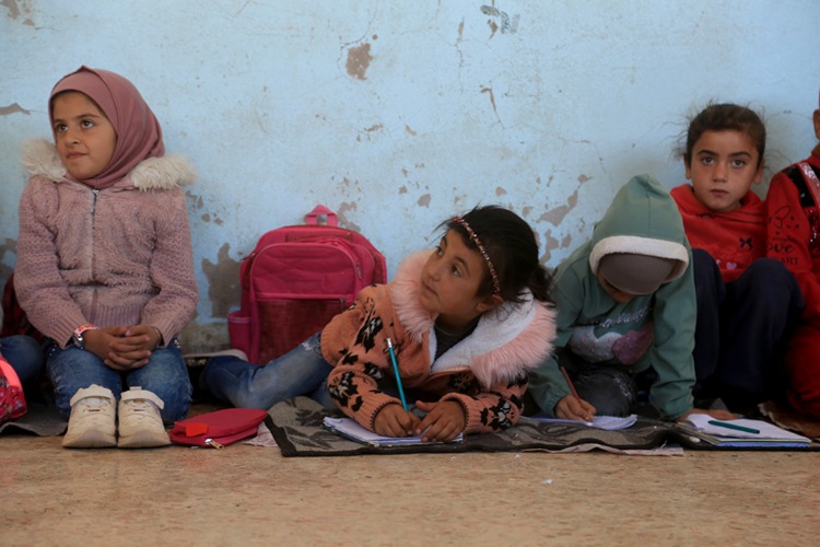 İdlib'in güneyinde yer alan Maar Şımarin köyündeki okullarda, çatışmaların yıkıcı etkileri hala hissediliyor. Sıraları, kapı ve pencereleri olmayan, duvarları hasar gören sınıflarda öğrenciler, soğuk zeminlerde oturarak ders yapıyor.
